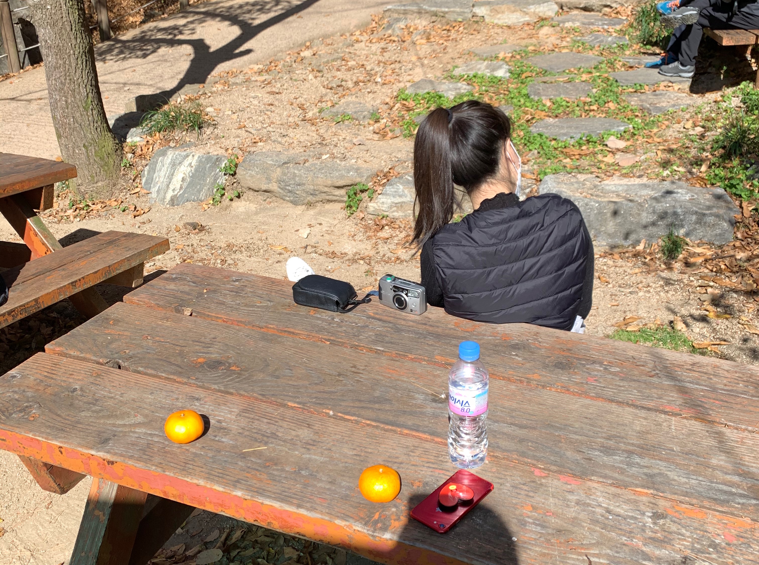 초반에 매우 가파른 25분 가량을 올라가다가 약수터에 멈춰서 물을 마시고 귤도 먹었다